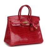 Hermes Birkin 25 Braise Shiny Porosus Crocodile Gold Hardware