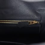 The interior is lined with Caban chevre and has a zip pocket with an Hermès engraved zipper pull and an open pocket on the opposite side.