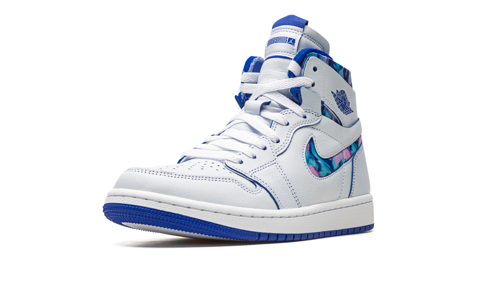 The Women’s Air Jordan 1 Zoom CMFT “25 Years in China” is a women’s version of the lifestyle shoe that celebrates the 25th anniversary of Jordan Brand’s entry into Chinese markets. The “25 Years in China” updates the modern version of the retro basketball sneaker with a comfort-focused build featuring a white leather construction and tie-dye-inspired pattern on its Swoosh and collar. A blue “Wings” logo appears on the collar and “Zoom Air” branding can be found on the right tongue while “25” and Jumpman logos appear on the left tongue. The Jordan 1 Zoom Comfort features a Zoom Air cushioned midsole. Release date: September 1, 2022