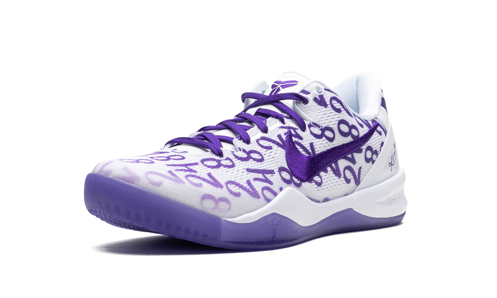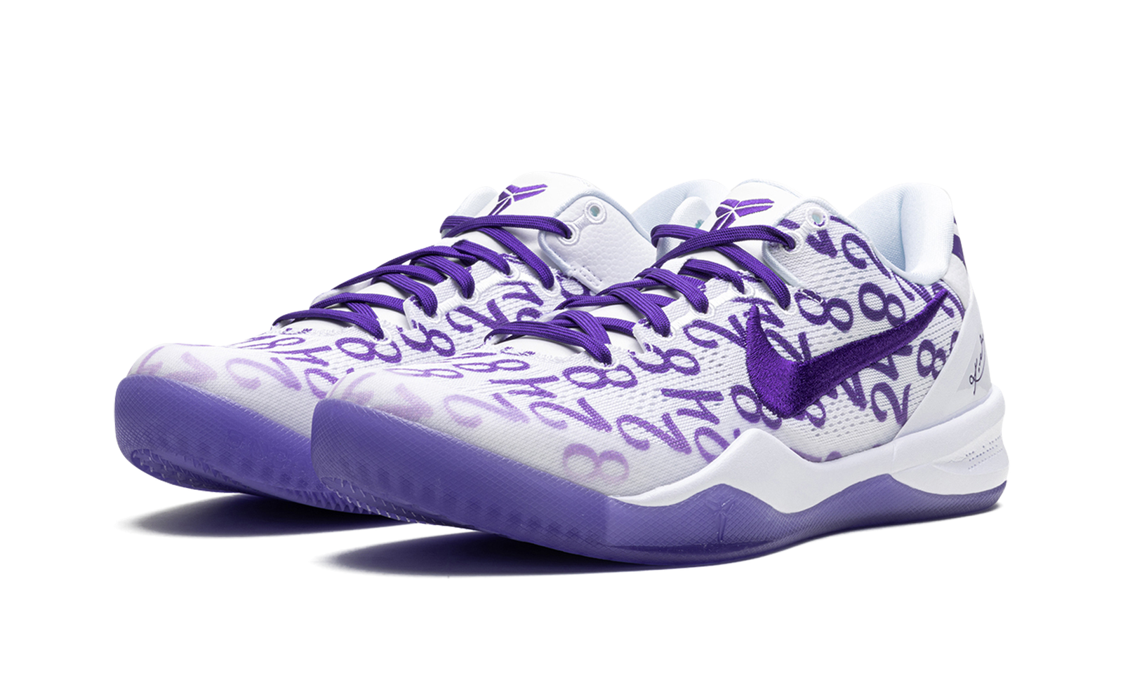 The Nike Kobe 8 Protro “Court Purple” is a colorway of Kobe Bryant’s eighth signature shoe with Nike Basketball with Bryant’s former “8” and “24” jersey numbers with the Los Angeles Lakers on its design. The upper features a white engineered mesh construction that features Bryant’s “8” and “24” jersey numbers with the Lakers in purple in an all-over pattern. More purple accenting can be seen on the Swoosh, inner lining, and laces. The green hue also appears on Bryant’s signature branding on the tongue and on the outsole underneath the white midsole. Release date: February 8, 2024