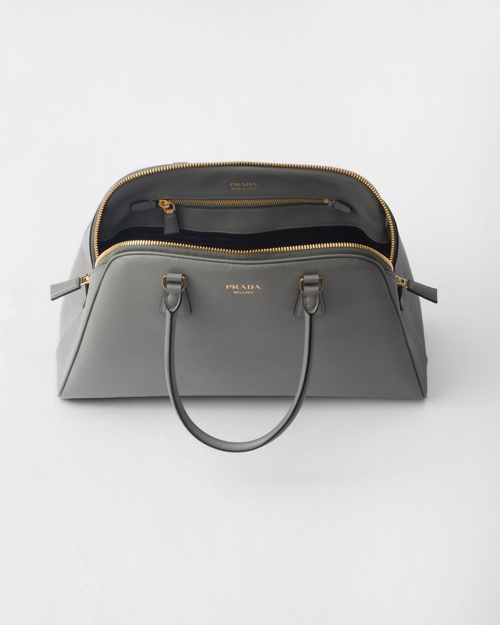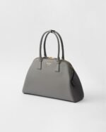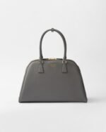 This bag with an elegant and sophisticated design and simple yet refined details emphasizes the distinctive crosshatch texture of Saffiano leather with a waxed finish. Brighten by the metal hardware, the accessory has a spacious interior with pockets and convenient leather handles. The lettering logo embossed on the front completes the versatile and timeless design, an expression of exceptional artisanal know-how.