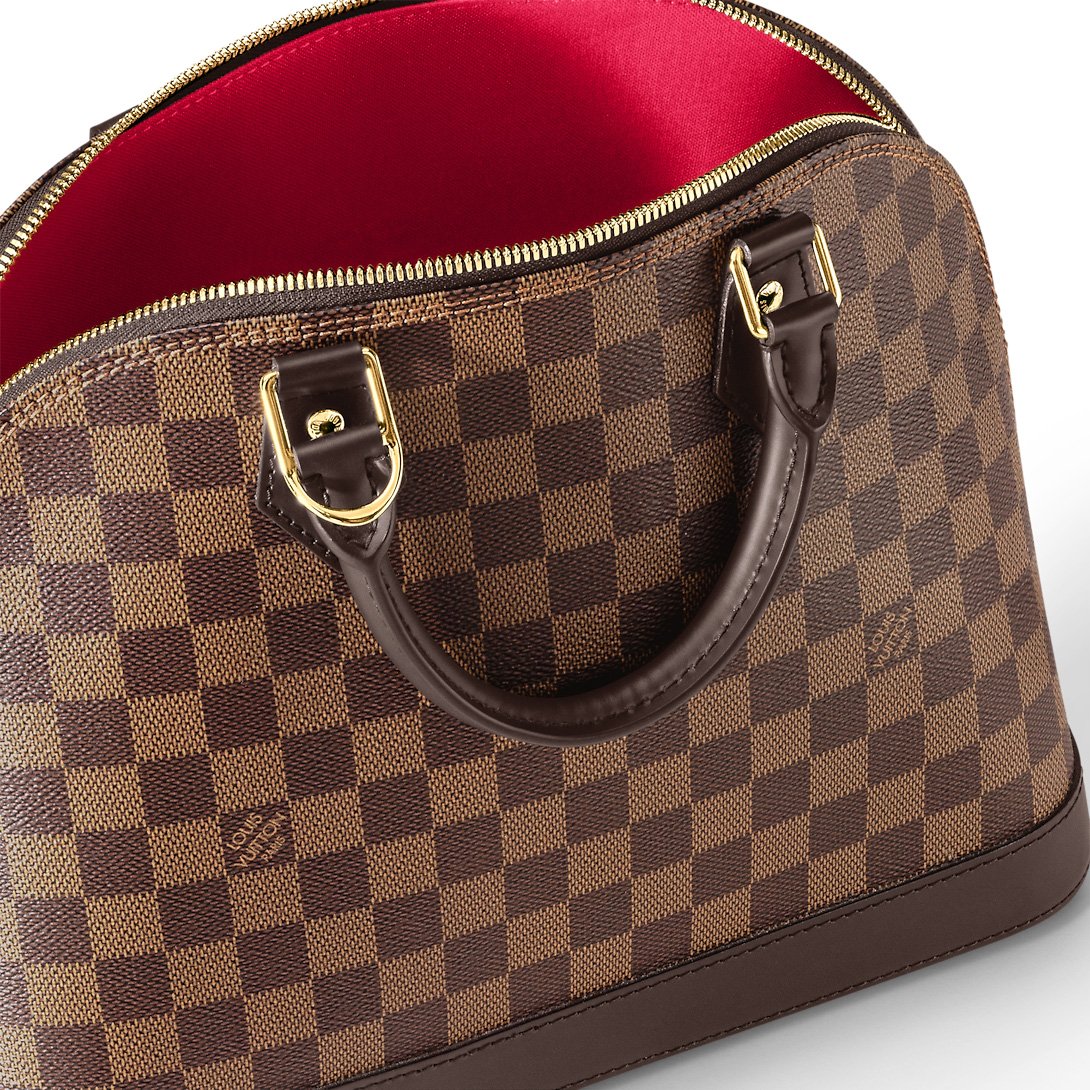 A timeless House icon, the Alma PM handbag is perfect for every day. Its structured lines recall the Art Deco original, designed in 1934 and named for the Alma Bridge in Paris. Crafted from signature Damier Ebene canvas, with hand-stitched Toron handles, natural cowhide trim and gleaming golden hardware, this elegant model can be carried by hand or on the elbow.