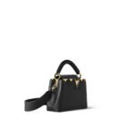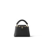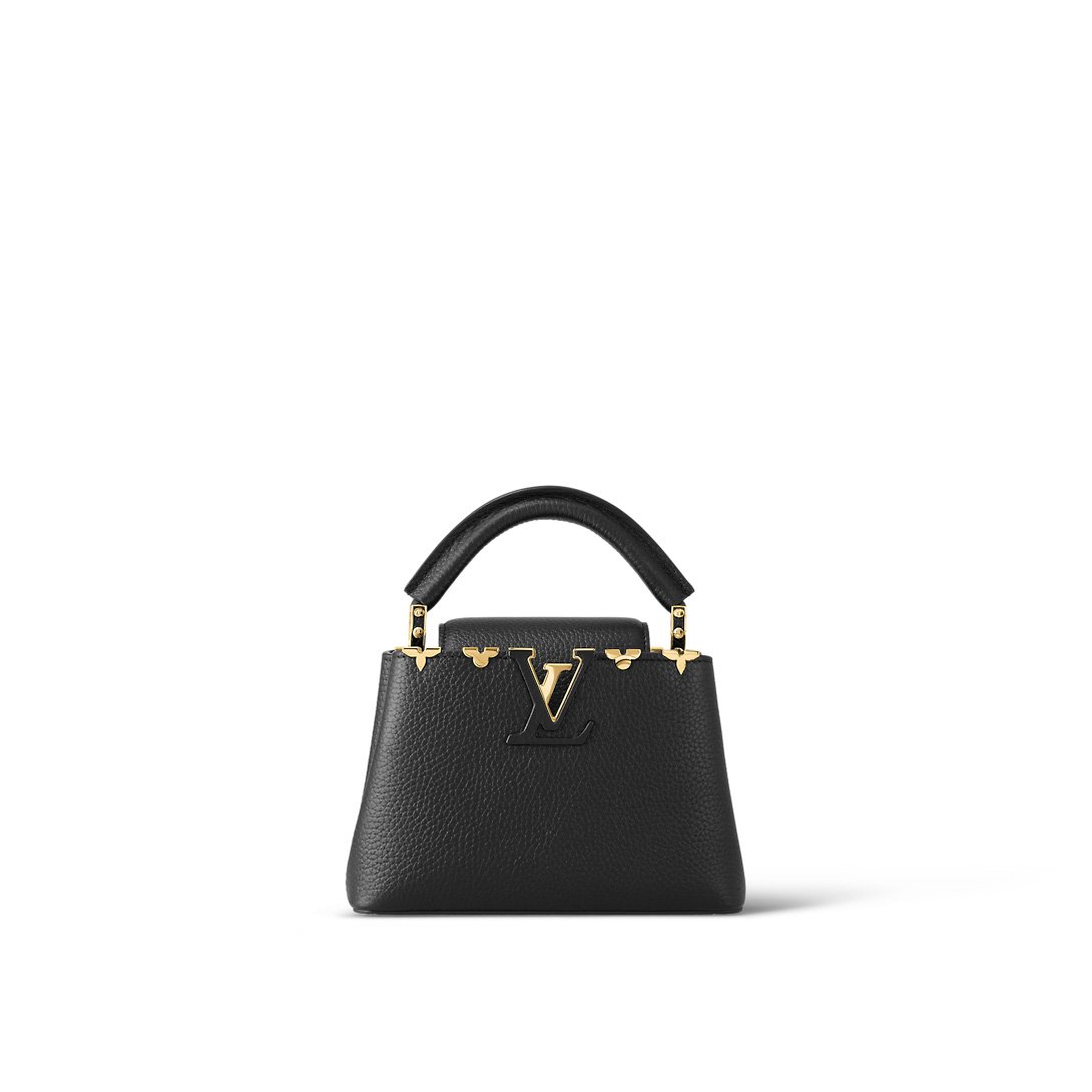 Fashioned from full-grain Taurillon leather, the now-classic Capucines BB handbag displays a host of House signatures:leather-wrapped LV Initials, jewel-like handle mounts inspired by historic trunks, and a distinctive flap with a Monogram Flower motif. Timelessly elegant, this charming model can be carried by hand or worn cross-body on its detachable strap. First launched in 2013, the Capucines is named for the Parisian street where Louis Vuitton first opened shop, in 1854.