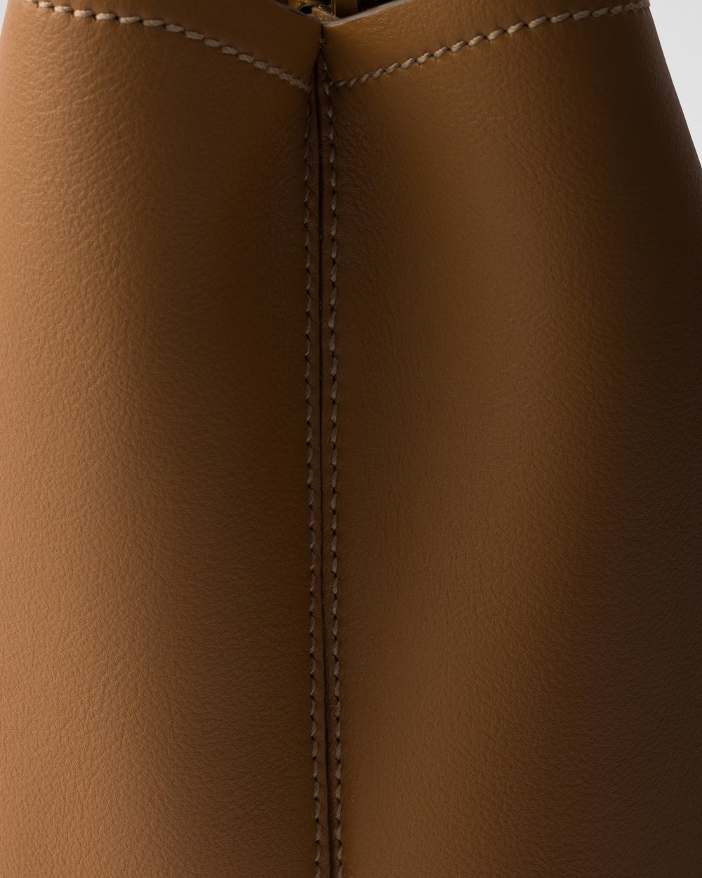 This leather bag has a refined design with soft lines, enriched with emblematic touches and artisanal details. The enameled metal triangle logo adds its signature touch to the versatile accessory.