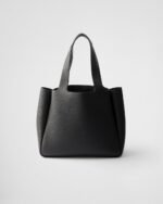 The lightweight silhouette of this leather tote bag is accentuated by the reverse stitching that give a soft, rounded shape to the roomy design. The metal lettering logo on the front elevates the modern and sophisticated accessory.