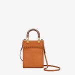Mini Sunshine Shopper bag made from dark brown leather with hot-stamped “FENDI ROMA” and stiff tortoiseshell effect plexiglass handles.