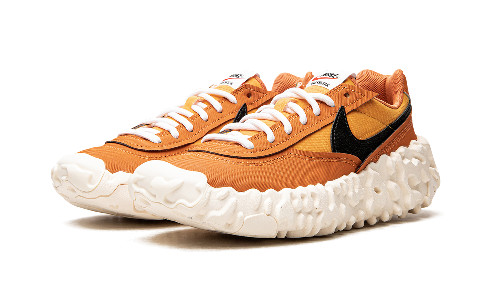 The Nike Overbreak SP “Hot Curry” is a fresh new colorway of the style that ushers in a new era of running style with a futuristic “Blue Ribbon Sports” aesthetic. A burnt orange hue is splashed across the Nike lifestyle shoe’s mesh base and leather overlays, while black accents appear on the Nike heel tab embroidery and lateral swooshes, and “OverBreak” branding appears on the tongue tabs. Nike React technology in the exaggerated ISPA OverReact sole delivers an extremely smooth, soft ride.