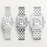 The Panthère de is the ultimate jeweled watch, resolutely modern in design with a sense of timeless glamour achieved through an angular form and understated size.