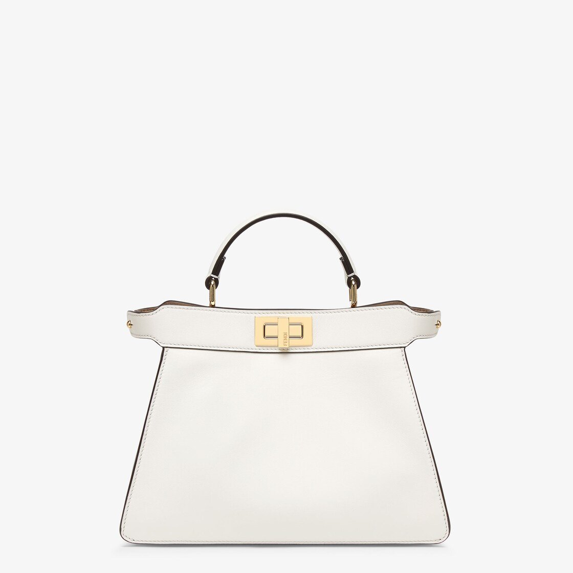 Iconic small Peekaboo ISeeU bag, made of white leather and embellished with the classic twist lock on both sides.