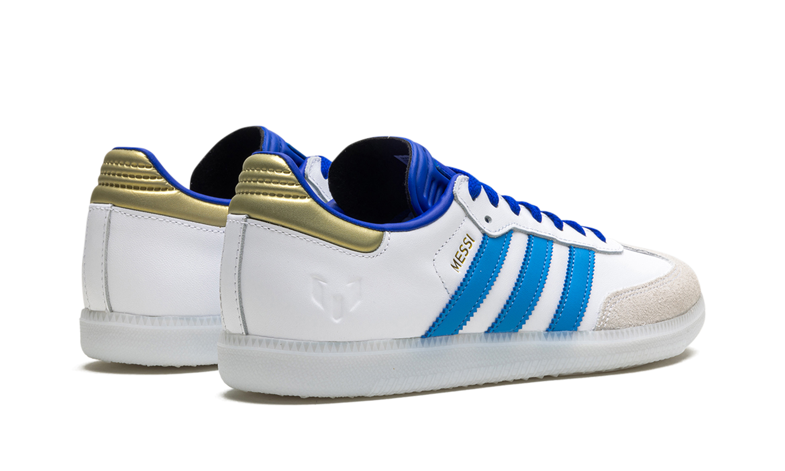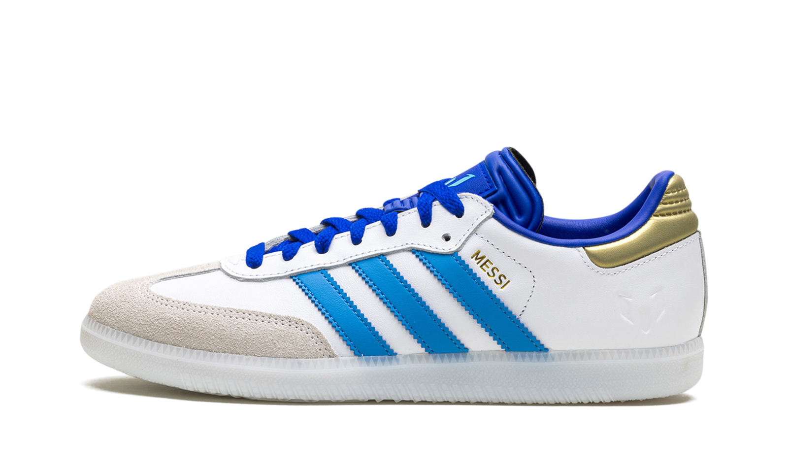 The Lionel Messi x adidas Samba Indoor “Argentina” is a collaboration between the soccer icon and adidas on the classic indoor soccer shoe. The adidas Samba “Argentina” is inspired by both the legendary soccer—or football, depending on where in the world you are—player and his home country. More specifically, the shoe is heavily inspired by the World Cup Trophy Messi won during the 2022 Qatar FIFA World Cup. The upper features a white leather base with two shades of blue inspired by Argentina’s kits (uniforms) in the aforementioned World Cup. Gold “Messi” branding appears on the lateral side by the blue Three Stripes and on the heel. An icy blue translucent rubber sole completes the look. Release date: February 20, 2024
