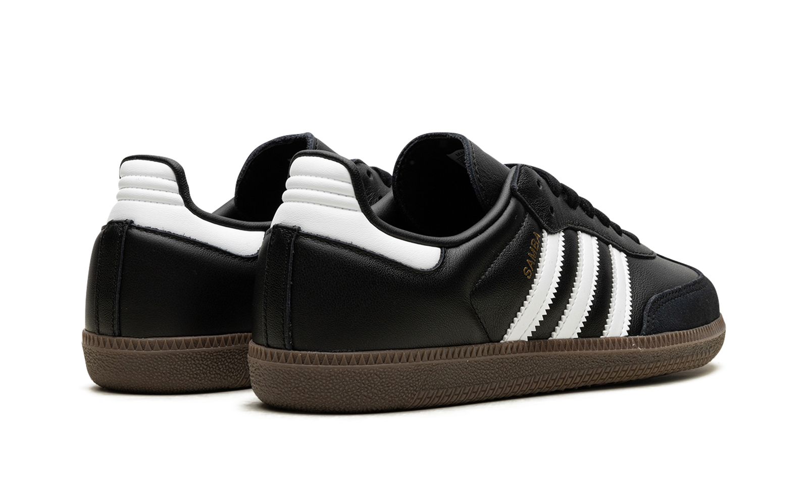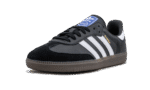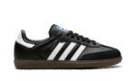 The adidas Samba OG is a low-top silhouette born on the indoor soccer field. The classic silhouette sports a black leather upper with suede overlays on the toe and heel. Contrasting white leather brings attention to the Three Stripes on each side panel and heel tab. A blue logo stamped on each tongue and “Samba” written in gold foil on each side panel act as signature branding hits. The soccer shoe sits atop a brown rubber outsole.