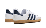 The adidas Samba OG “White/Night Indigo” is a colorway of the retro shoe with navy accents. The adidas Samba OG is one of the most popular sneakers in the world due to its versatility and comfort. Here, the “White/Night Indigo” features a white leather base and a grey suede overlay on the toe. The Three Stripes branding on the sides appears in a Night Indigo tone, while a gold foil “Samba” logo can be seen on the lateral side of the mid-panel. Classic adidas Samba detailing is printed on the tongue. A gum rubber sole completes the look.
