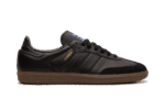 The adidas Samba OG “Triple Black” is a mostly all-black colorway of the popular retro indoor soccer shoe. The Samba has enjoyed a resurgence in popularity in recent years, as the shoe’s classic design has come to be appreciated by more and more people looking for a casual shoe that can be worn with anything. Here, the “Triple Black” colorway features a black leather construction with tonal suede overlays on the toe and forefoot. Black Three Stripes branding is found on the sides. “Samba” detailing appears in gold foil lettering on the lateral side of the shoe and an “adidas Samba” patch can be found on the tongue. A dark brown rubber sole completes the look. Release date: December 15, 2023