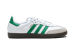 The adidas Samba OG “White/Green” is a colorway of the retro sneaker with a classic, two-tone color block. The adidas Samba is one of the most popular sneakers in the game, and certainly one of the most wearable, too, as evidenced by this easy to style colorway. The upper is complete with a white leather base and green leather Three Stripes branding on the sides. A gold foil “Samba” logo appears on the lateral side of the midfoot. Classic “adidas” detailing can be found on the tongue. Underfoot, a black rubber sole puts the finishing touch on the design.