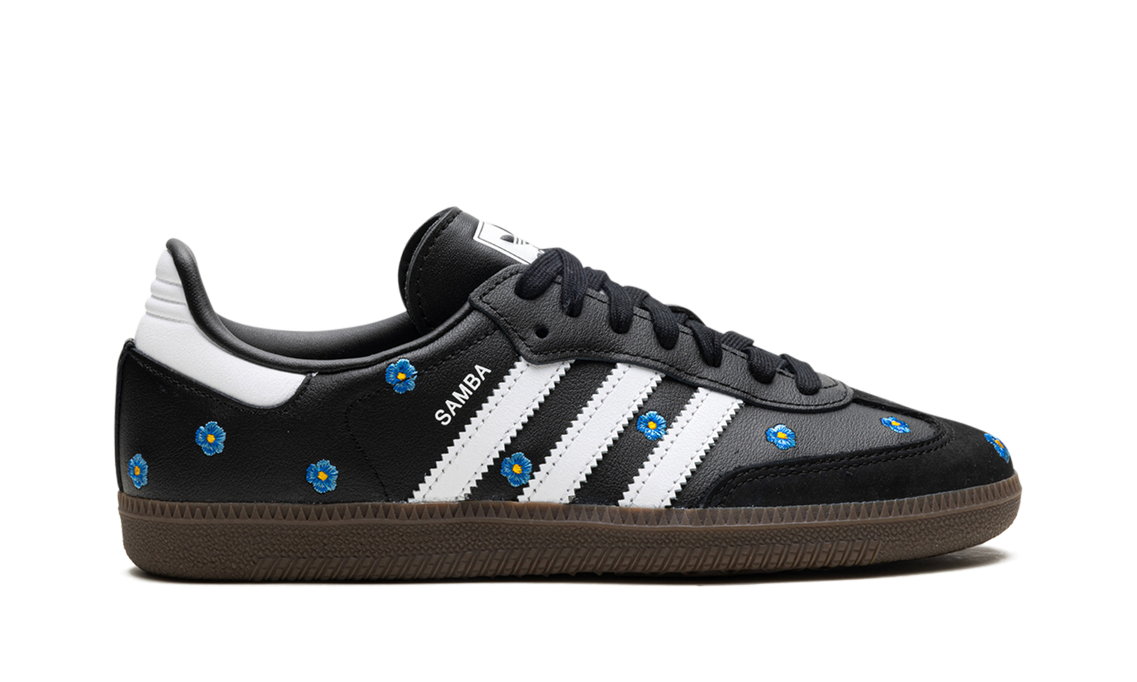 Embrace a delicate, artistic twist on a classic with the adidas Samba OG WMNS “Light Blue Floral” sneaker. This women’s-sized icon refreshes its heritage silhouette with a gorgeous black leather upper and soft suede T-toe. Scattered across the side panels are embroidered light blue flowers with yellow centers, injecting a feminine, whimsical charm into the sporty design. Finished with the signature white serrated Three-Stripes and a timeless gum rubber outsole, this shoe is a perfect blend of vintage flair and modern elegance.