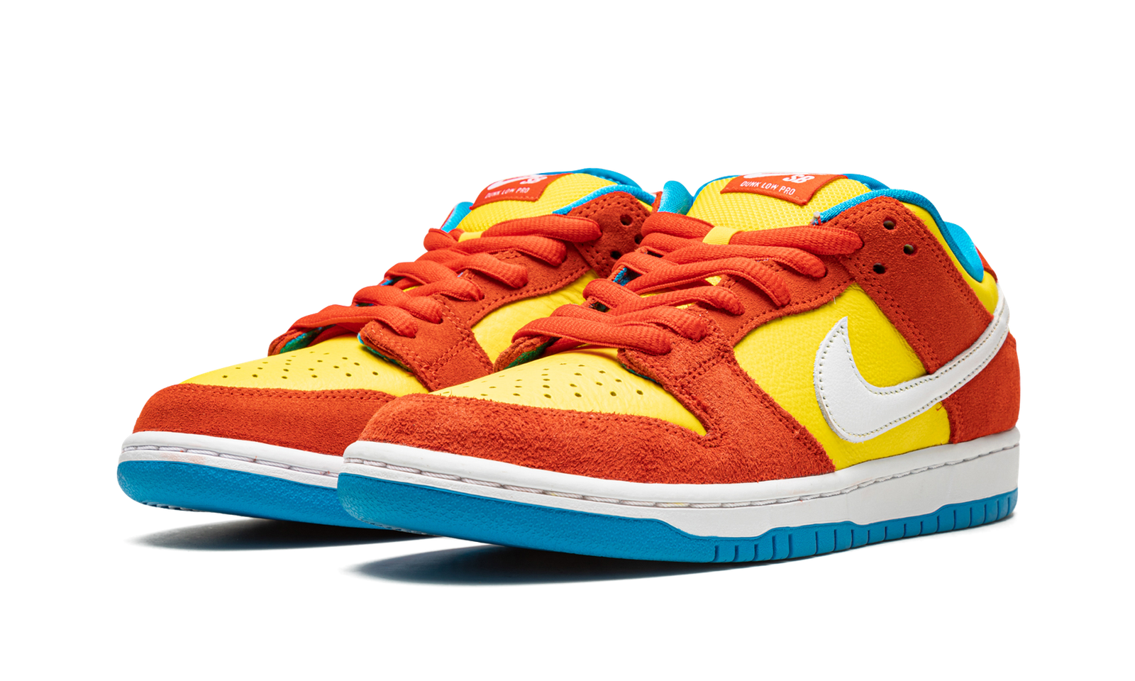 The Nike SB Dunk Low “Bart Simpson” is a colorway that calls to mind the outfit and appearance of the iconic cartoon character from “The Simpsons.” While not an official collaboration between Nike SB and “The Simpsons,” the “Bart Simpson” SB Dunk Low is nonetheless a nod to Bart, as well as the cartoon series. The colorway is the successor to Nike SB’s previous “Simpsons” inspired Dunks, the “Homer” from 2004, and the “Marge” from 2008. The shoe features fiery Habanero Red suede overlays, a white leather Swoosh, and a yellow leather base. A white “Nike” logo appears on the heel and classic “Nike SB Dunk” branding is found on the tongue tag. The underside of the tongue, the collar, and rubber outsole are all designed in a hue dubbed Blue Hero. Altogether, the red, yellow, and blue color palette is inspired by Bart Simpson’s appearance.