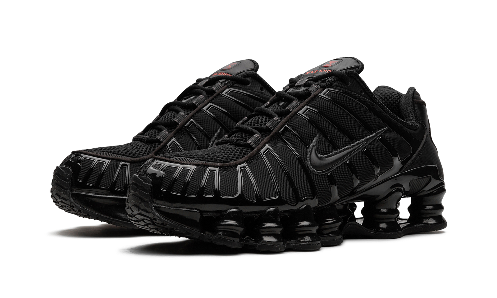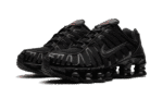 The Women’s Nike Shox TL “Black” is a women’s-exclusive colorway of the retro sneaker with a mostly monochromatic black appearance. The shoe’s design features a black fabric construction with tonal TPU overlays. A black patent leather Swoosh logo appears on either side of the shoe. Red “Nike Shox” branding is seen on the tongue. The Shox TL’s signature piston-shaped columns underfoot provide both a comfortable and responsive ride, as well as a vintage, Y2K-era flair. Release date: July 25, 2023