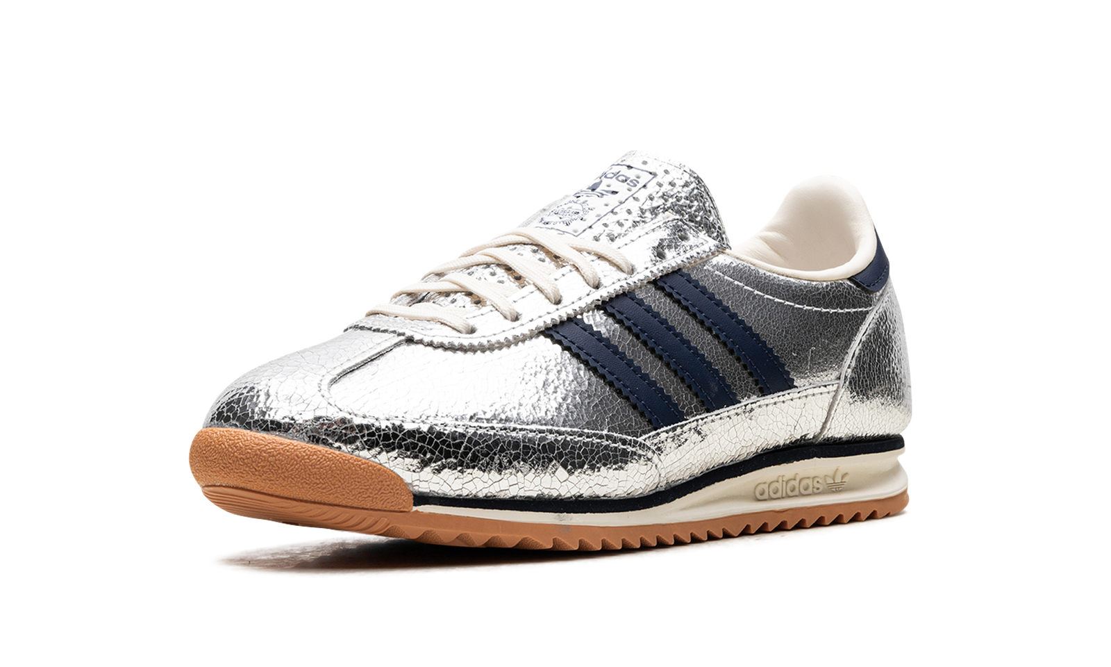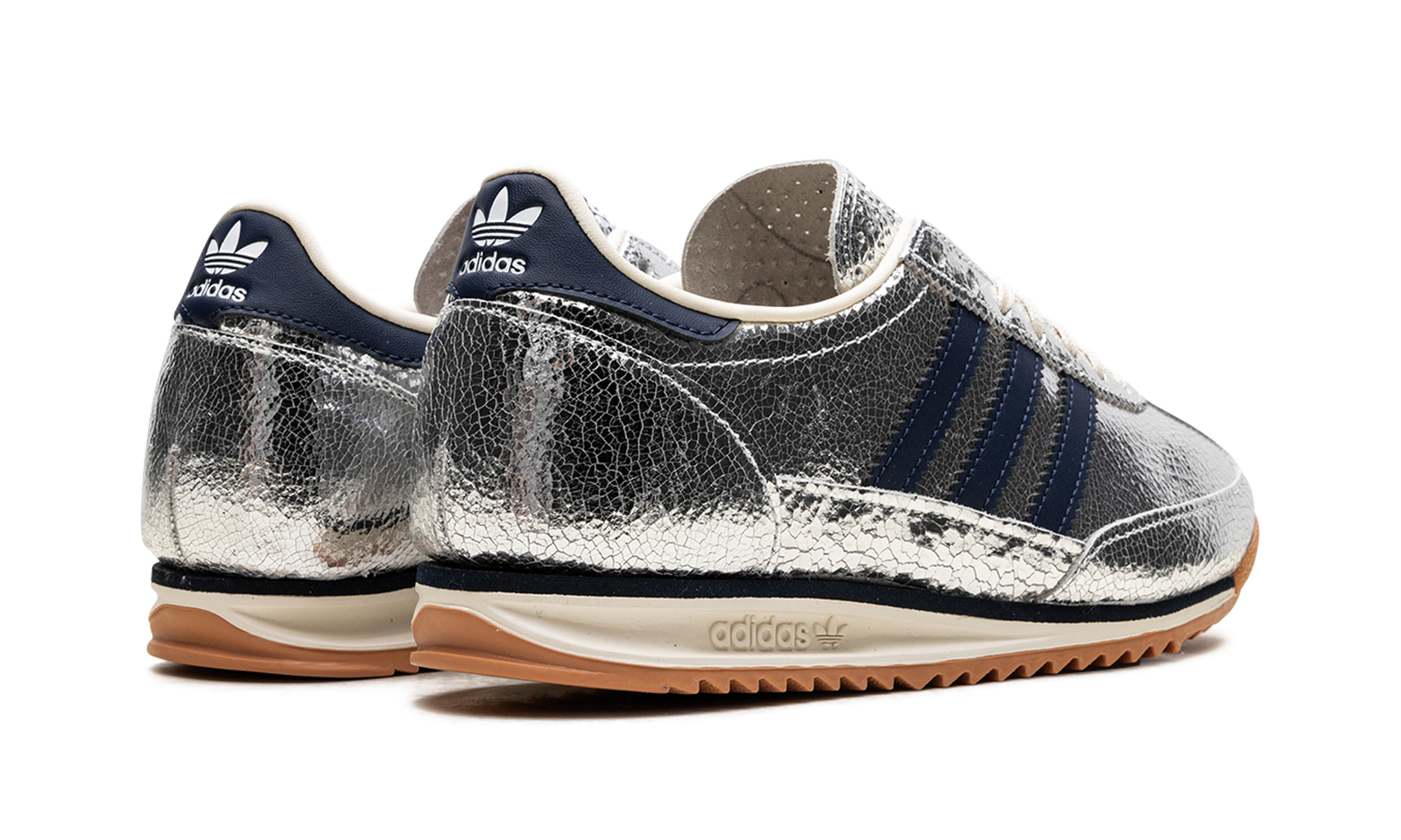 Step into retro-futuristic style with the Adidas SL 72 “Silver Metallic Collegiate Navy.” This design features a bold silver metallic upper contrasted with classic Collegiate Navy accents. A unique blend of vintage inspiration and modern flair.
