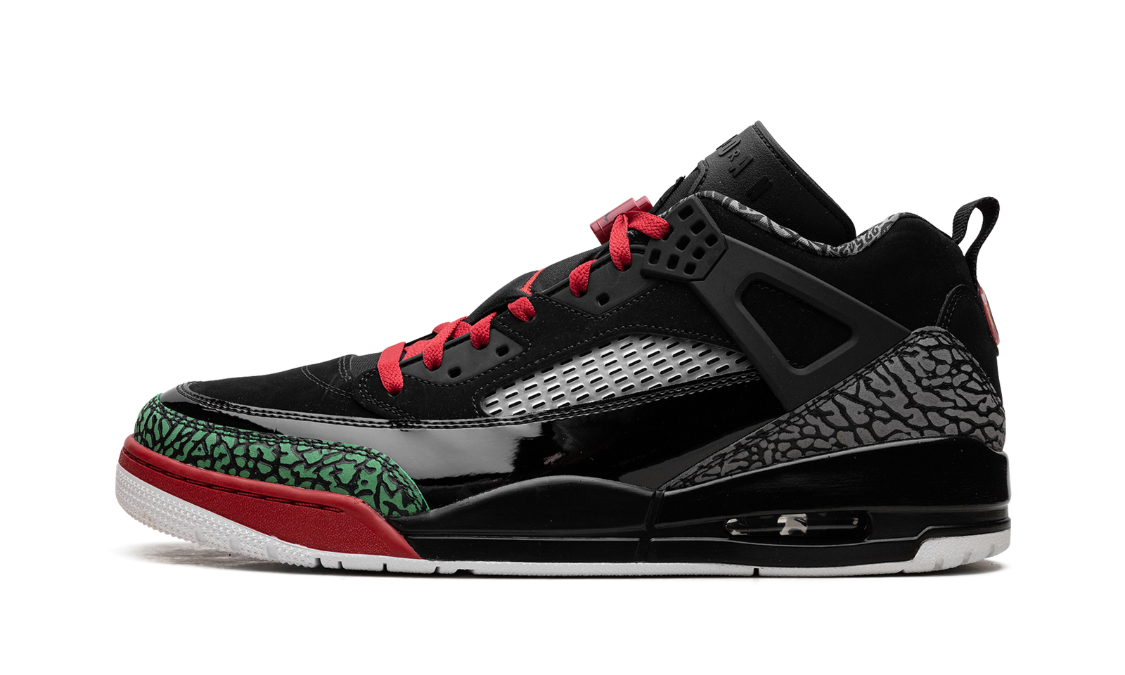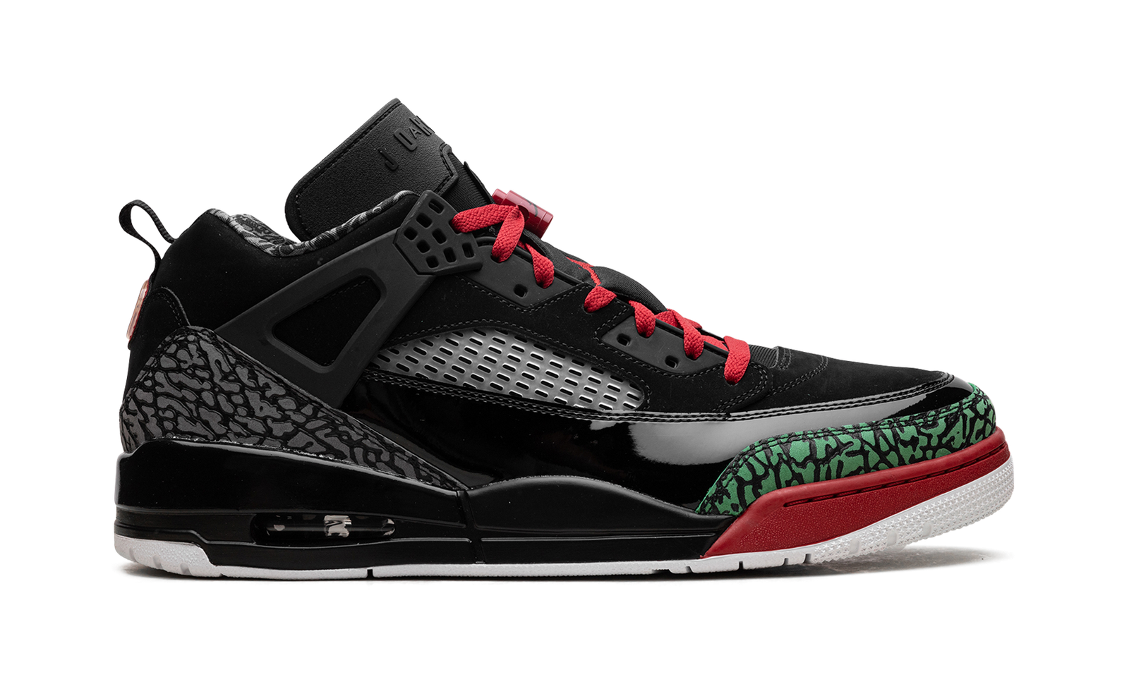 Step into a celebration of heritage design with the Jordan Spizike Low OG “Black / Varsity Red”. This celebrated hybrid silhouette fuses signature elements from multiple Jordan models, like the elephant print and lace wings. Featuring a classic black and red colorway, it delivers comfortable Air cushioning and a bold, sophisticated look, perfect for making a powerful statement.