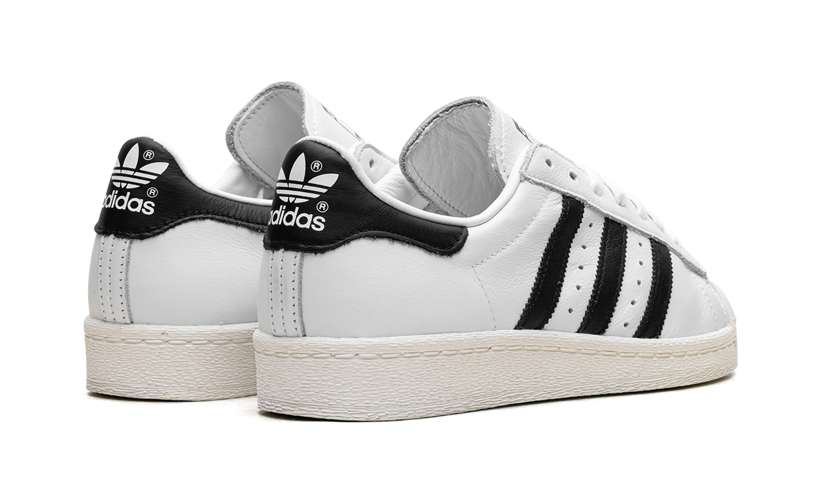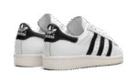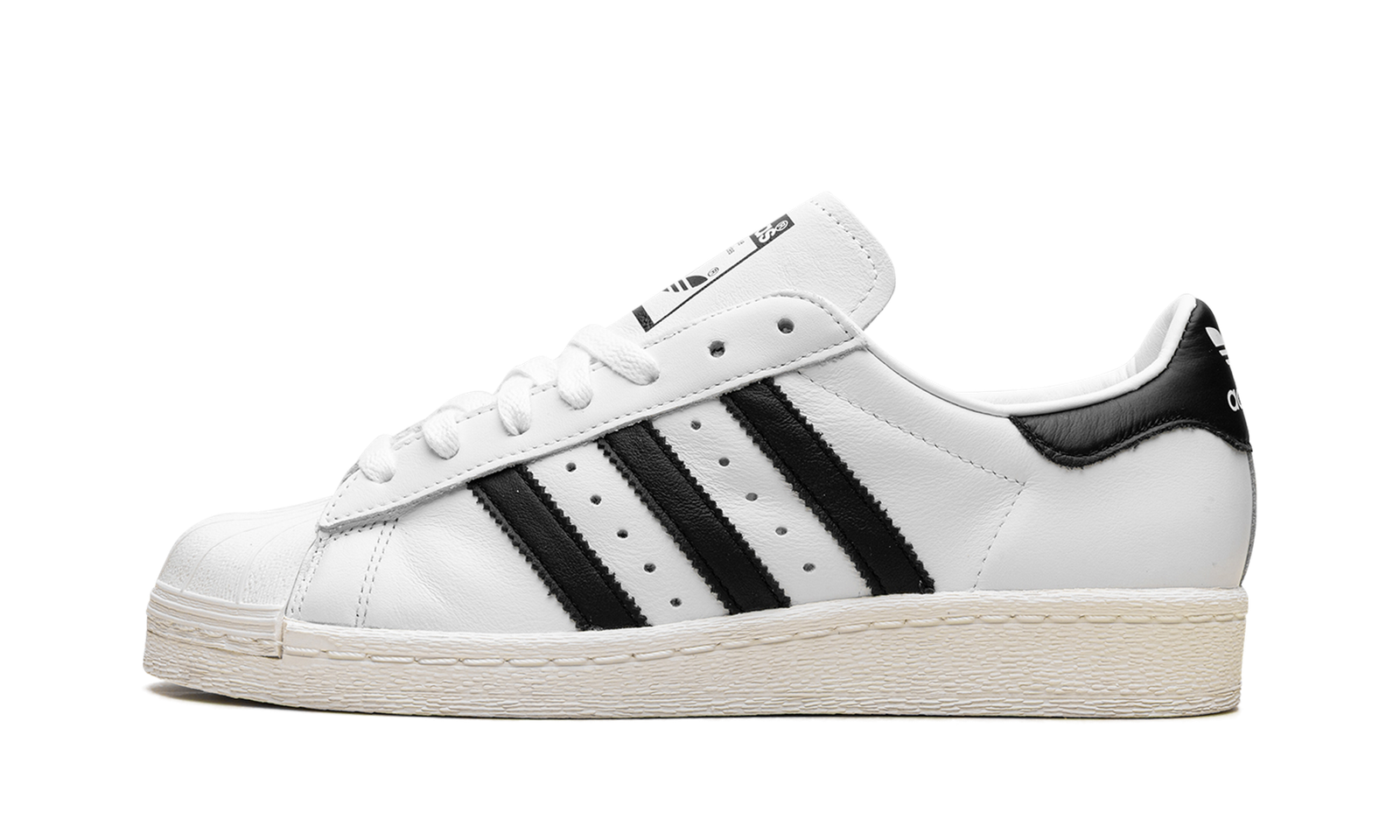 The Superstar 82 ‘White’ shoe features a classic design with a clean white aesthetic, offering a versatile and timeless addition to any sneaker collection.