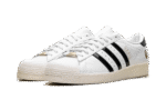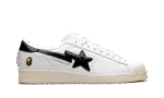 The Superstar Vintage ‘A Bathing Ape – White Black’ shoe features a classic design with a vintage aesthetic, infused with the iconic A Bathing Ape style in a white and black colorway, offering a unique and timeless addition to any sneaker collection.
