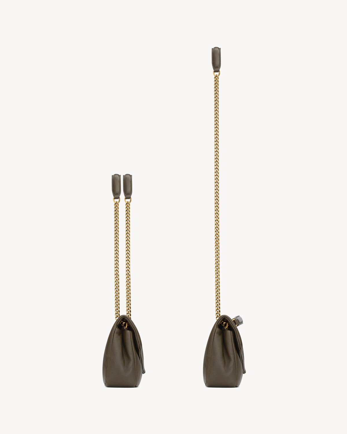 BAG decorated with THE CASSANDRE, FEATURING A LEATHER AND CHAIN CROSSBODY STRAP THAT CAN BE WORN DOUBLED FOR SHOULDER CARRY.
