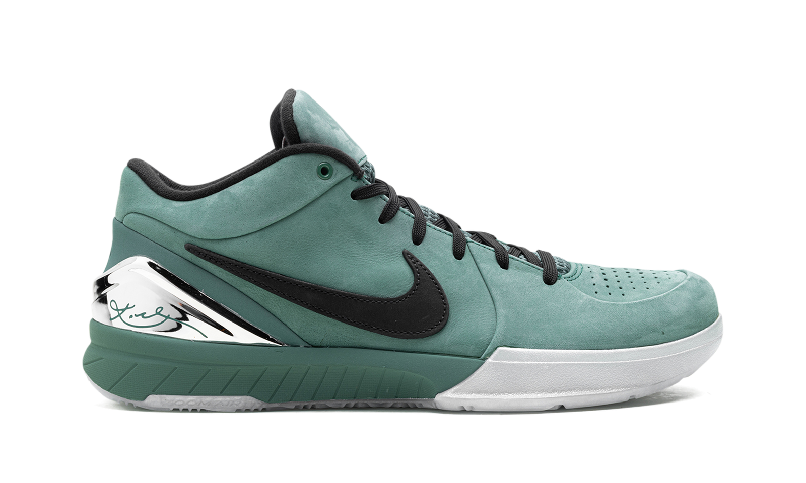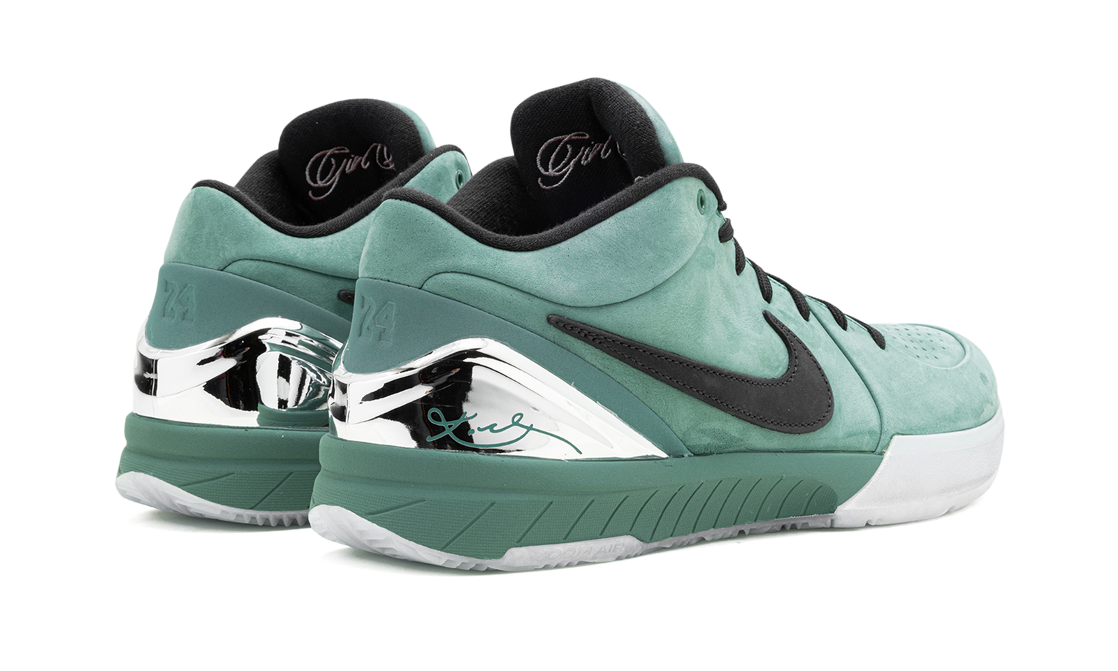 The Nike Zoom Kobe 4 Protro “Bicoastal” is a colorway of Kobe Bryant’s fourth signature shoe with a green suede finish. The colorway features a Bicoastal, or green, suede construction with a black suede Swoosh logo appearing on both sides. On the back of the shoe, a metallic silver heel counter dons Bryant’s signature in green lettering, while a debossed “24” logo, inspired by Bryant’s jersey number with the Los Angeles Lakers, can also be seen on the back of the shoe. Bryant’s “Sheath” logo is embroidered on the tongue. The phrase “Girl Dad” appears on the underside of the tongue. A green midsole and icy blue outsole complete the look. Release date: May 31, 2024