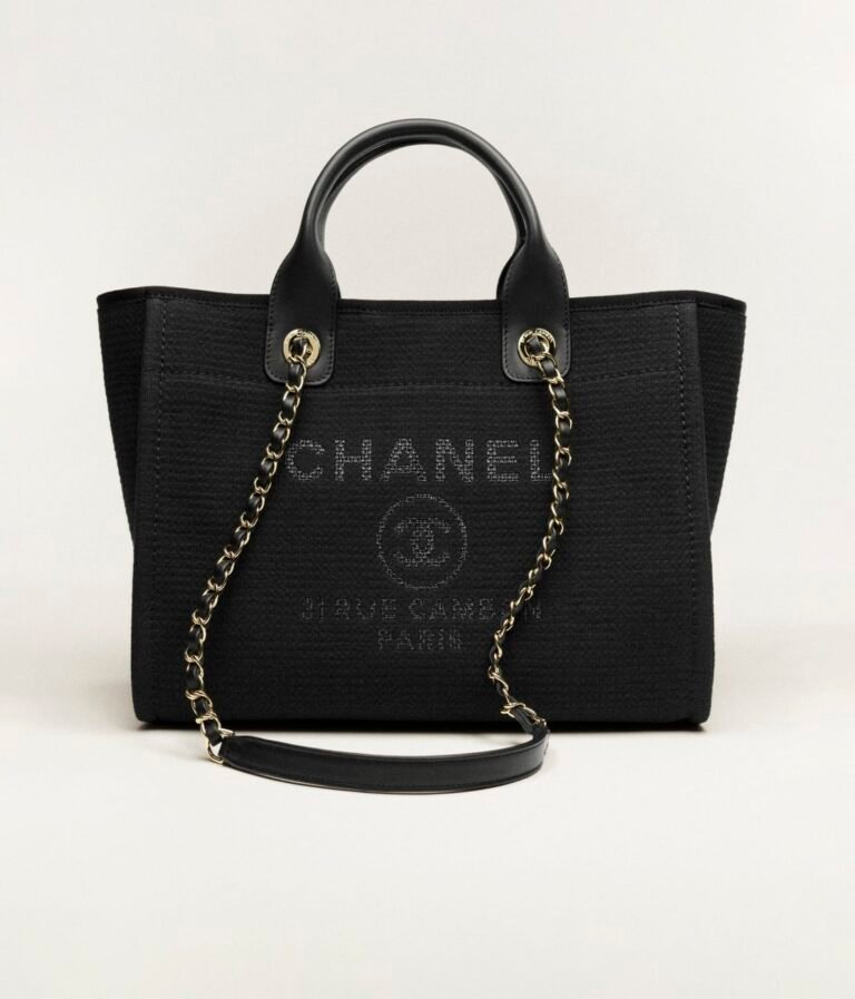Measurements:9.4 x 15.2 x 6.6 in / 24 x 39 x 17 cmThis Small Deauville bag is made of black