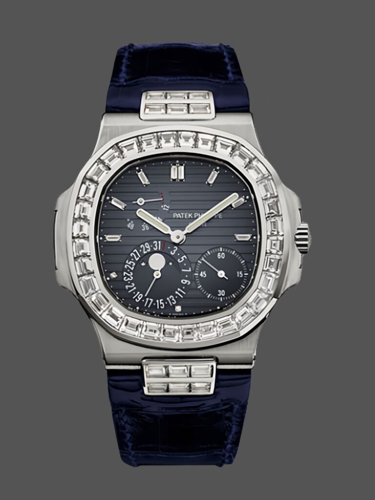 Patek Philippe Nautilus Moon Phases Rose & White Gold Slate Blue Sunburst 5712GR 001