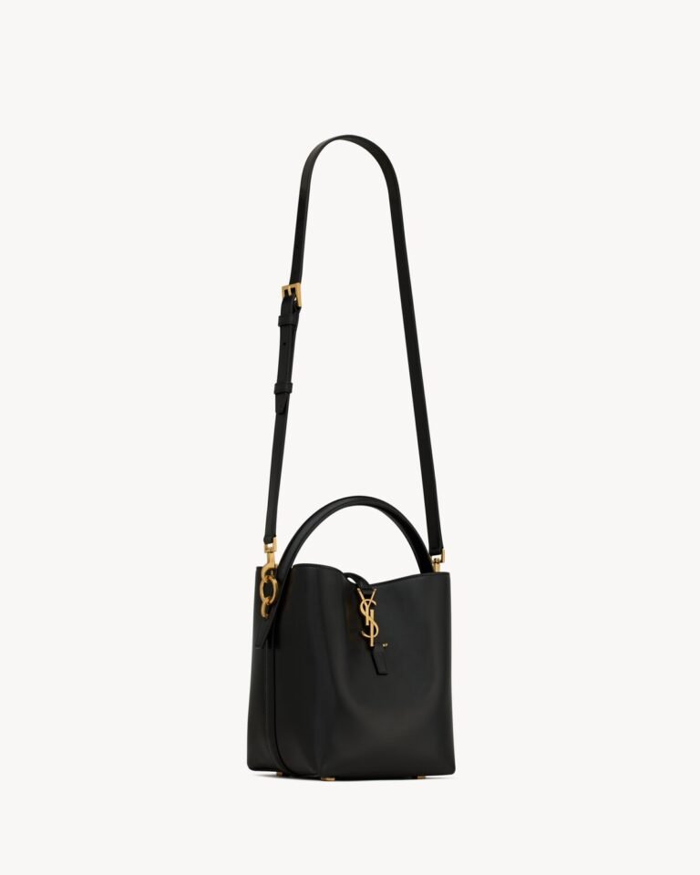 mini version of the LE 37 bucket bag, featuring a CASSANDRE hook closure.A top handle and adjustable and detachable strap