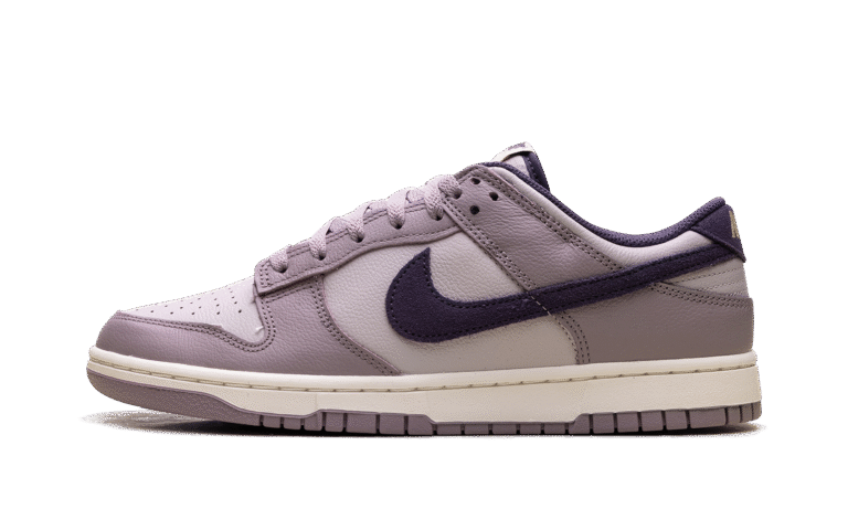 Made with tumbled leather, the Nike Dunk Low SE ‘Light Violet Ore’ sports two shades of lavender with dark violet,