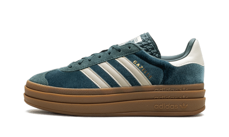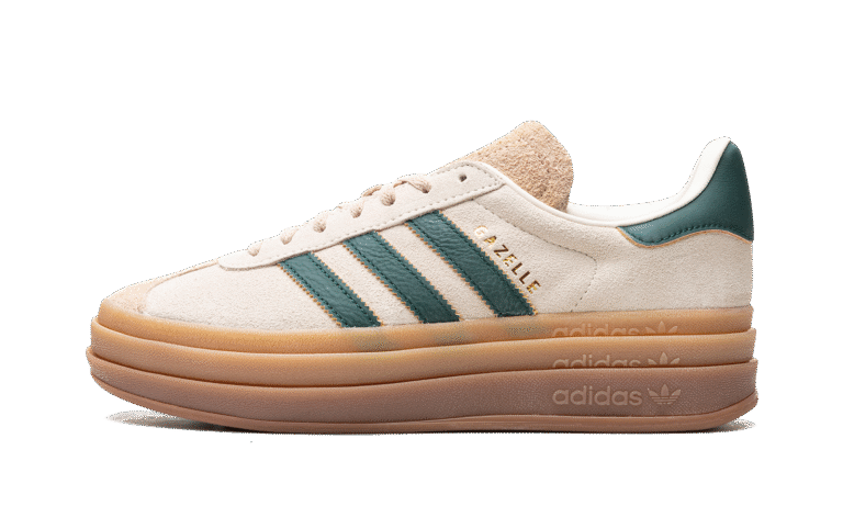 The Women’s adidas Gazelle Bold “Cream White/Collegiate Green” is a women’s-exclusive colorway of the retro sneaker with a stacked midsole