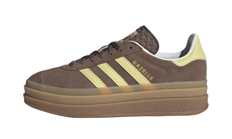 Step into a legend with the adidas Gazelle Bold Wmns “Earth Strata Powder Yellow Cloud White” sneaker, or as we