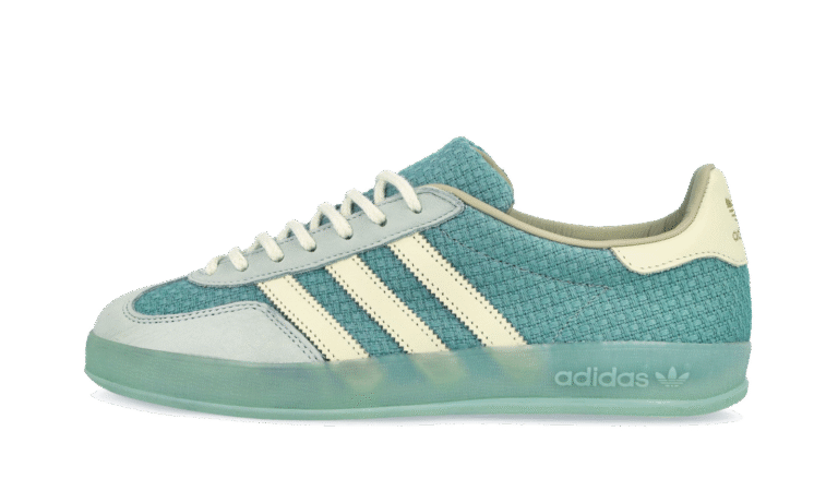 The Bad Bunny x adidas Gazelle Indoor “Off White” is a collaboration on the retro indoor soccer style by the