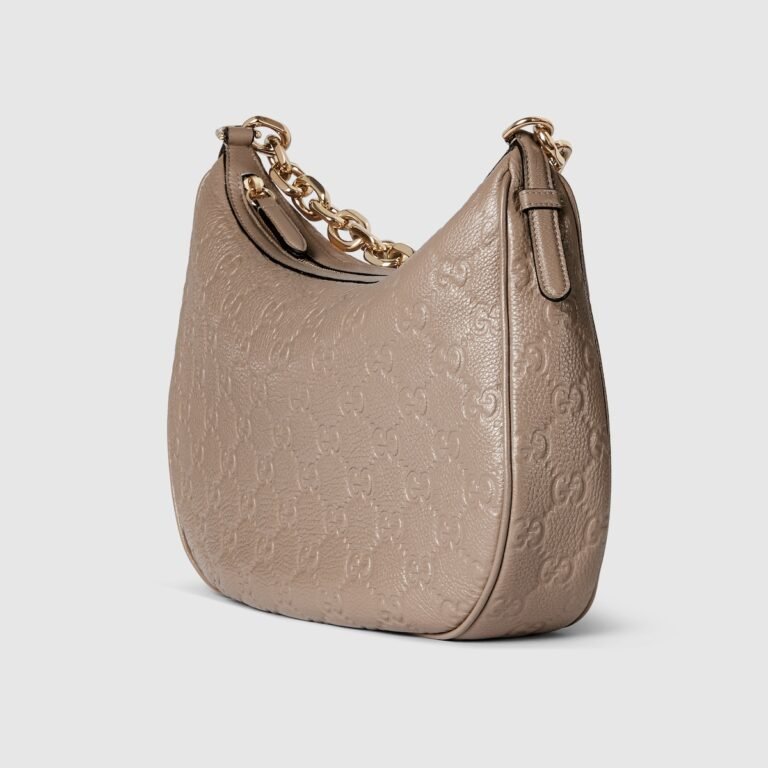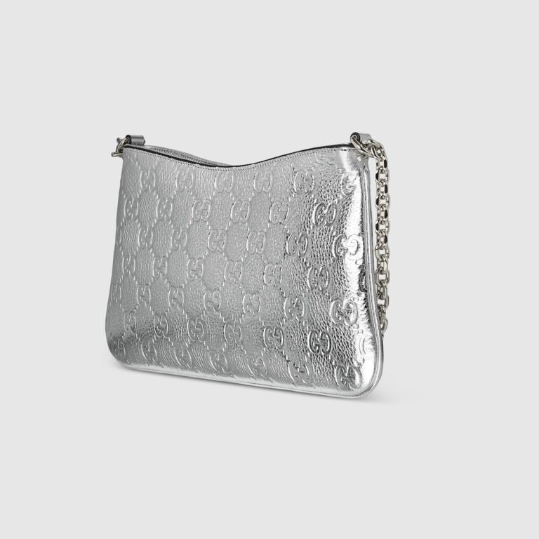 The new GG Emblem collection reinterprets the House??s history of elegance and craftsmanship. This medium shoulder bag features an additional