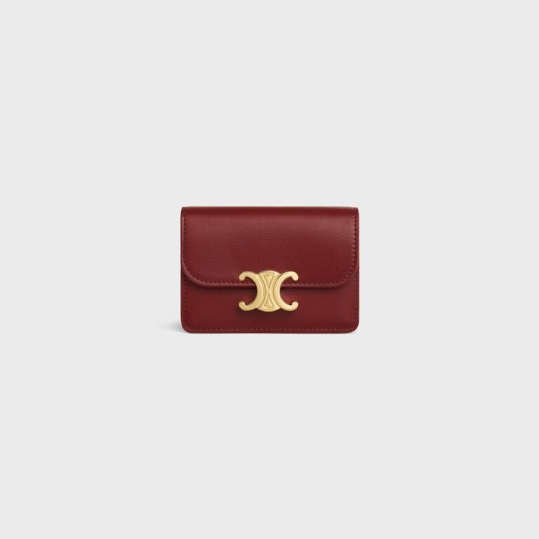 CARD HOLDER WITH FLAP TRIOMPHE IN SHINY CALFSKIN DARK RUBY