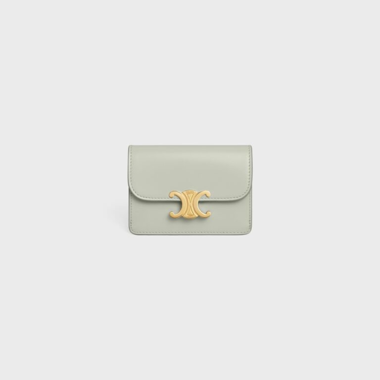 CARD HOLDER WITH FLAP TRIOMPHE IN SHINY CALFSKIN LIGHT CLAY