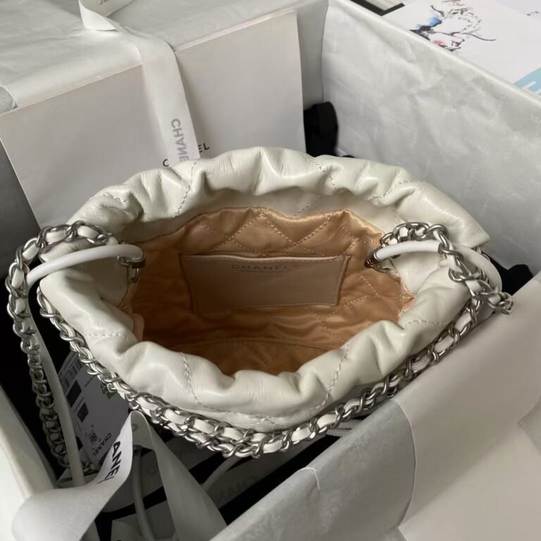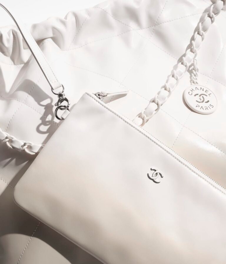 Chanel 22 AS3980 Mini Tote Shiny Calfskin & Silver-Tone Metal White