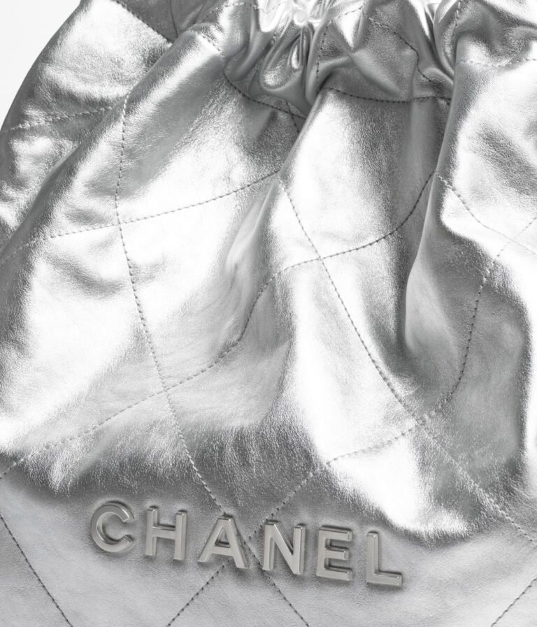 Chanel 22 AS3980 Mini Tote Shiny Calfskin & Silver Metal Silver Black