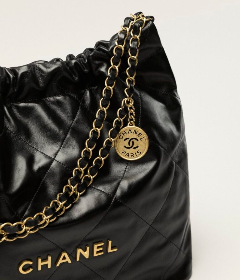 Chanel 22 Hobo Bag 24C AS4486 Gold Metallic Black Shiny Calfskin New Edition Horizontal
