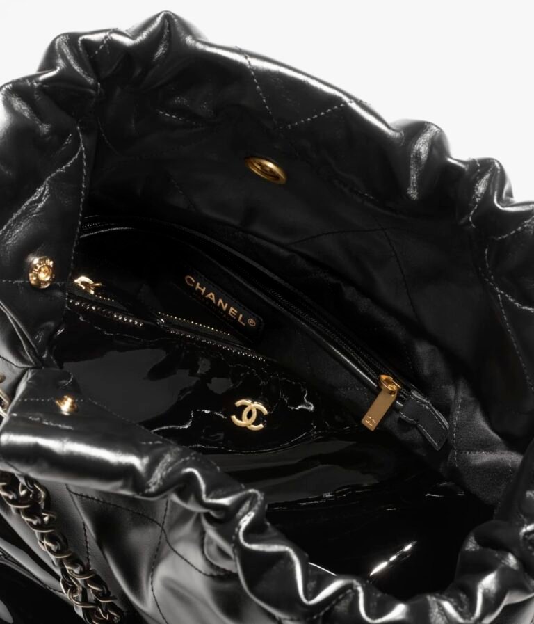 Measurements:13.7 x 14.4 x 2.7 in / 35 x 37 x 7 cmThis small Chanel 22 hobo bag is in