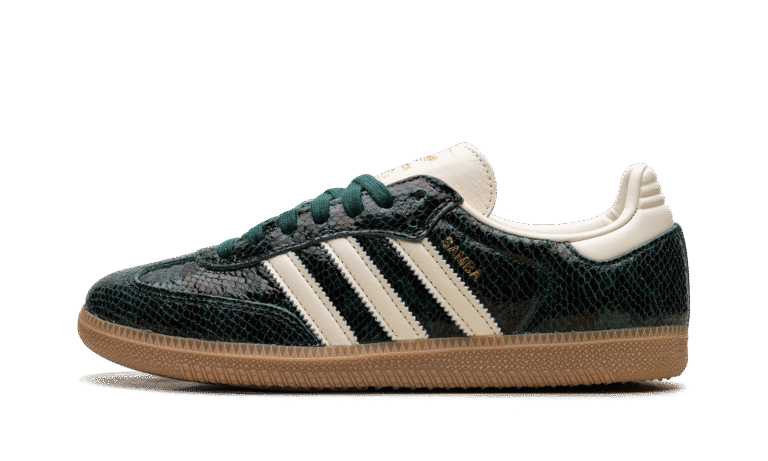 Infuse your rotation with a touch of polished elegance with the Adidas Samba OG Wmns “Snakeskin / Collegiate Green”. This