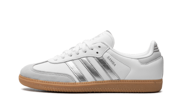Step into a sleek, modern aesthetic with the Adidas Samba OG Wmns “White / Silver Metallic / Grey”. This celebrated