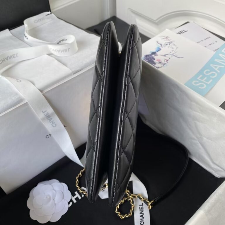 Chanel 24C AS4611 Vintage Logo Lambskin Rectangular Shoulder Bag Black
