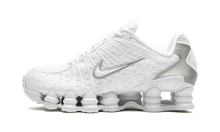 The Women’s Nike Shox TL “White” is the women’s sizing of the retro sneaker in a monochromatic white colorway. The
