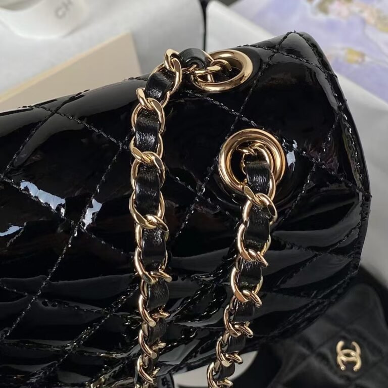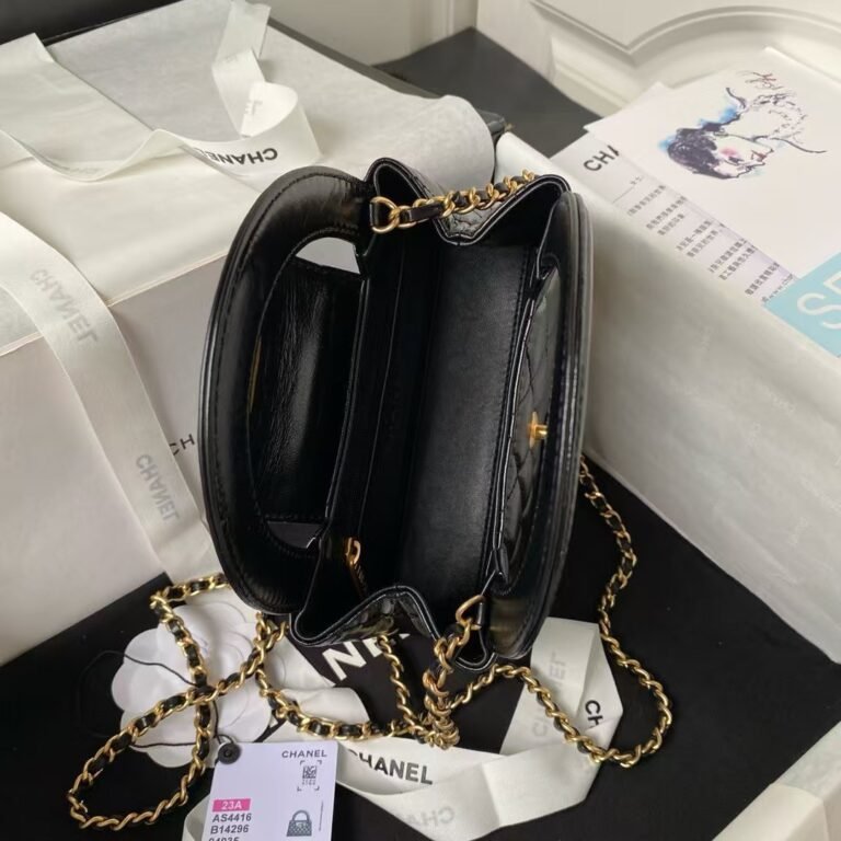 Chanel AS4416 Mini Shopping Bag Shiny Aged Calfskin Gold Tone Metal Black