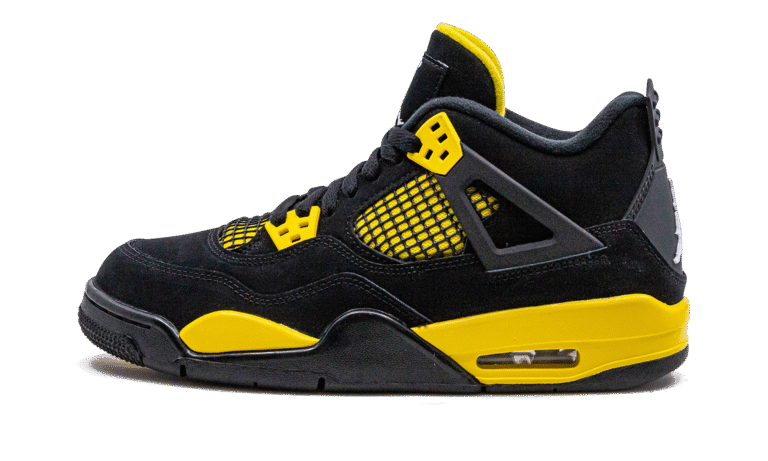 The Air Jordan 4 GS “Thunder” is the youth sizing of the modern re-release of the popular, non-original colorway of